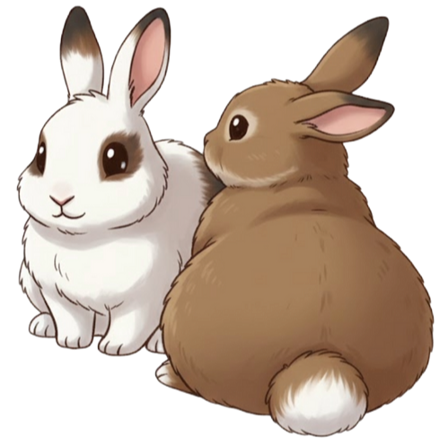 BonBon (white) is 3 years old. He may be smaller, but he’s definitely the boss. He’s curious, loves his food, and will often hop over to say hello or check what you’re up to.