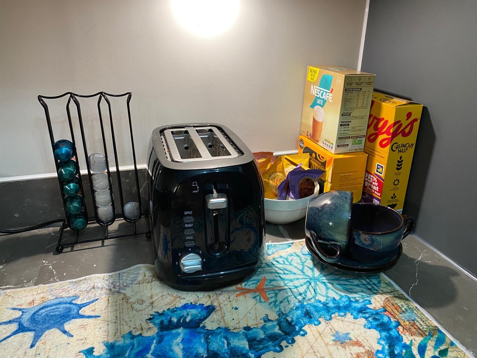 ✔️ Kettle ✔️ Coffee machine ✔️ Cutlery & Dinnerware ✔️ Microwave ✔️ Toaster ✔️ Dishwasher ✔️ Washing machine with dryer ✔️ Oven ✔️ Fridge freezer ✔️ Hob